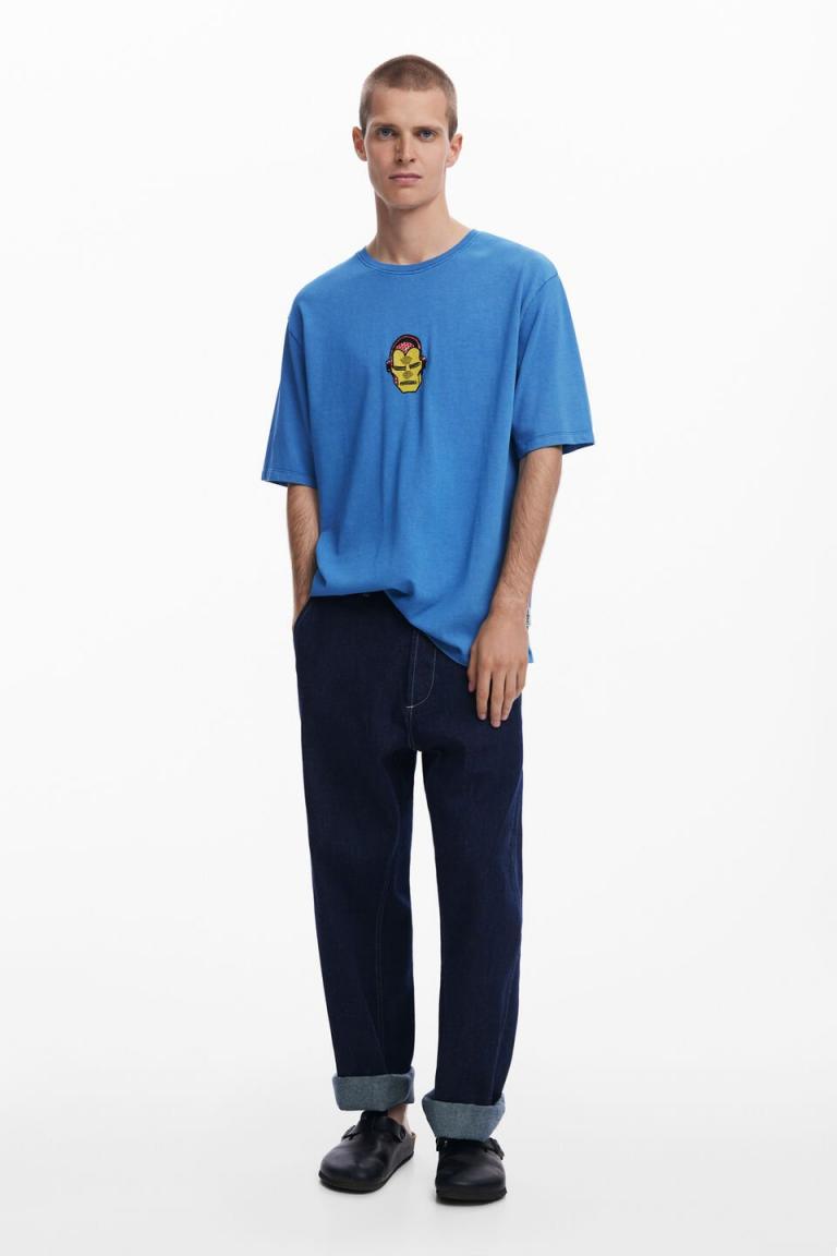 Camiseta de manga corta y cuello redondo con bordado en la parte delantera y estampado de comic en la espalda. Fit: Regular Cuello: Redondo Manga: Corta Licencia: Marvel Al comprar productos de algodón de Desigual, estás apoyando nuestra inversión en Better Cotton. Este producto se obtiene a través de un sistema de balance de masas y puede que no contenga Better Cotton. bettercotton.org/massbalance. Medidas de la modelo:Altura: 183 cm; Cintura: 71 cm; Caderas: 89 cm SKU: 25SMTK295002