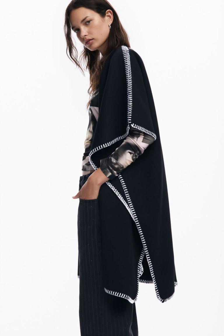 Poncho con bufanda incorporada efecto piel Regular Color liso Poliéster reciclado Medidas de la modelo:Altura: 182 cm; Cintura: 62 cm; Cadera: 90 cm SKU: 24WAIA262000U