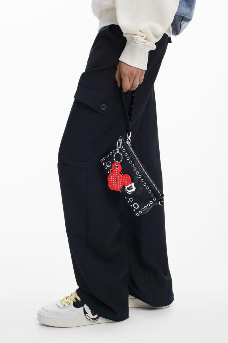 Monedero en efecto piel con asa, tachuelas y bordado de Mickey Mouse, el icónico personaje de Disney. Múltiples bolsillos interiores Cierre de cremallera Asa extraíble Licencia: Disney Poliéster reciclado Medidas: 19.5 x 4 x 10 cm SKU: 25SAYP082000U